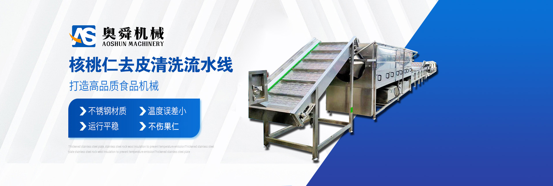 奧舜機械 【核桃仁去皮機】打破了核桃仁深加工過程中的困擾,純物理脫皮方法,專門針對核桃仁表皮的沖洗,代替了傳統(tǒng)的化學泡制去皮,使產品更安全放心,連續(xù)式工作,操作簡單,去皮率高、破損率低,自動化程度高,節(jié)省人工,可配套烘干箱使用。